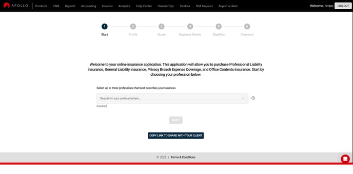 That's it! You're ready to start the online application. Go through the pages of the online application and answer the underwriting questions to obtain a quote. Once you're satisfied, you can bind and make payment online.